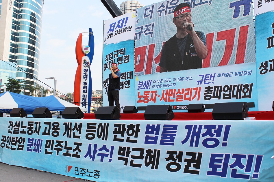 (사진: 7월15일 서울역과장에서 열린 민주노총의 2차 총파업 집회 ⓒ한국노동사회연구소)