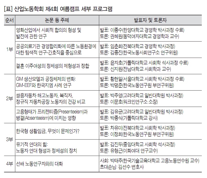 한국산업노동학회 여름캠프 참관기