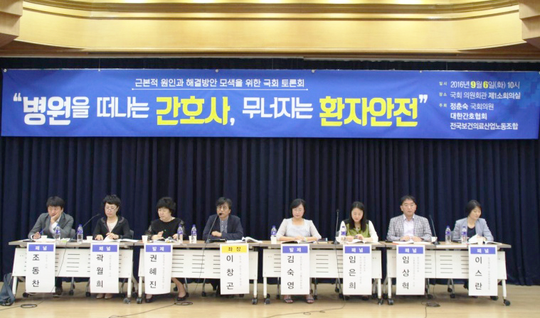 (보건의료노조가 9월6일 국회에서 '근본적 원인과 해결방안 모색을 위한 토론회'를 개최하고 있다. ⓒ보건의료노조)
