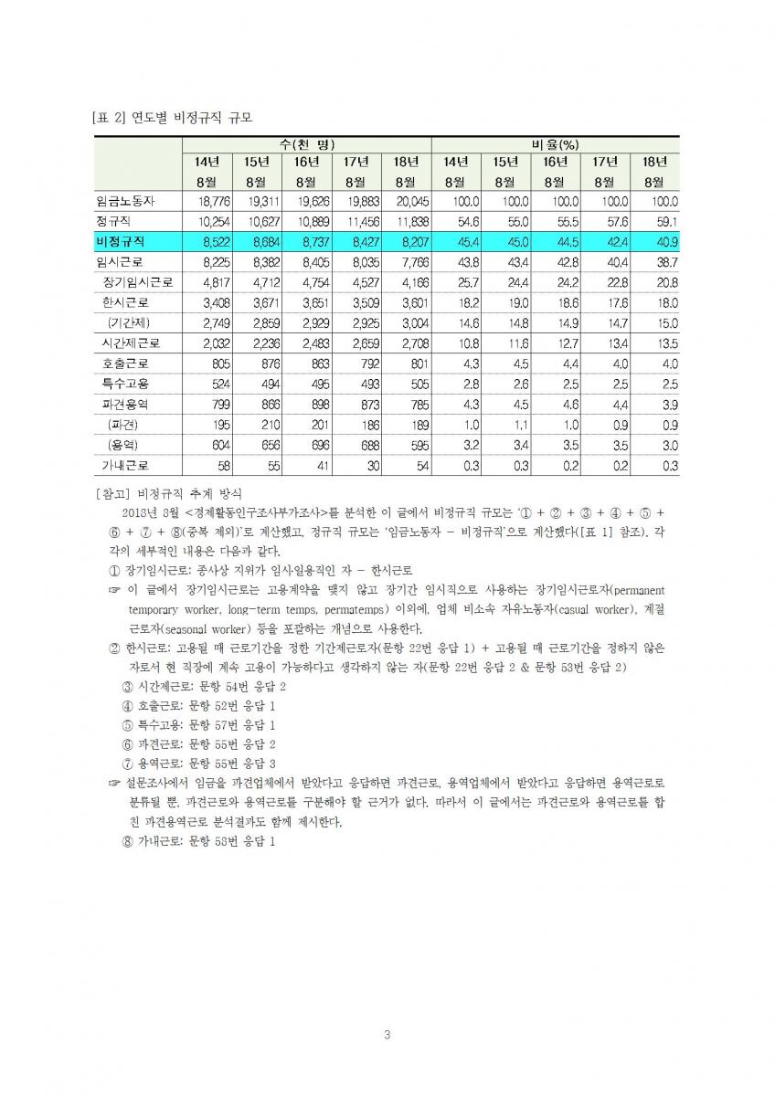 비정규직 규모와 실태