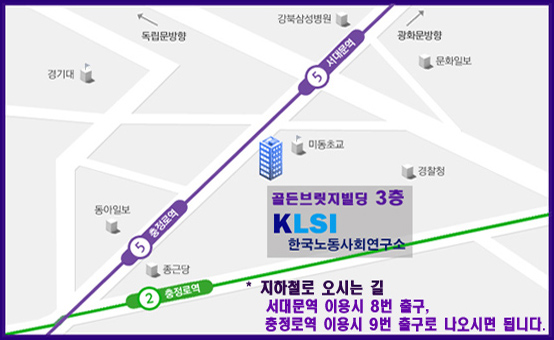 *변경주소: 서울시 서대문구 충정로50(충정로3가, 골든브릿지빌딩) 3층 한국노동사회연구소 (우편번호 03740)
