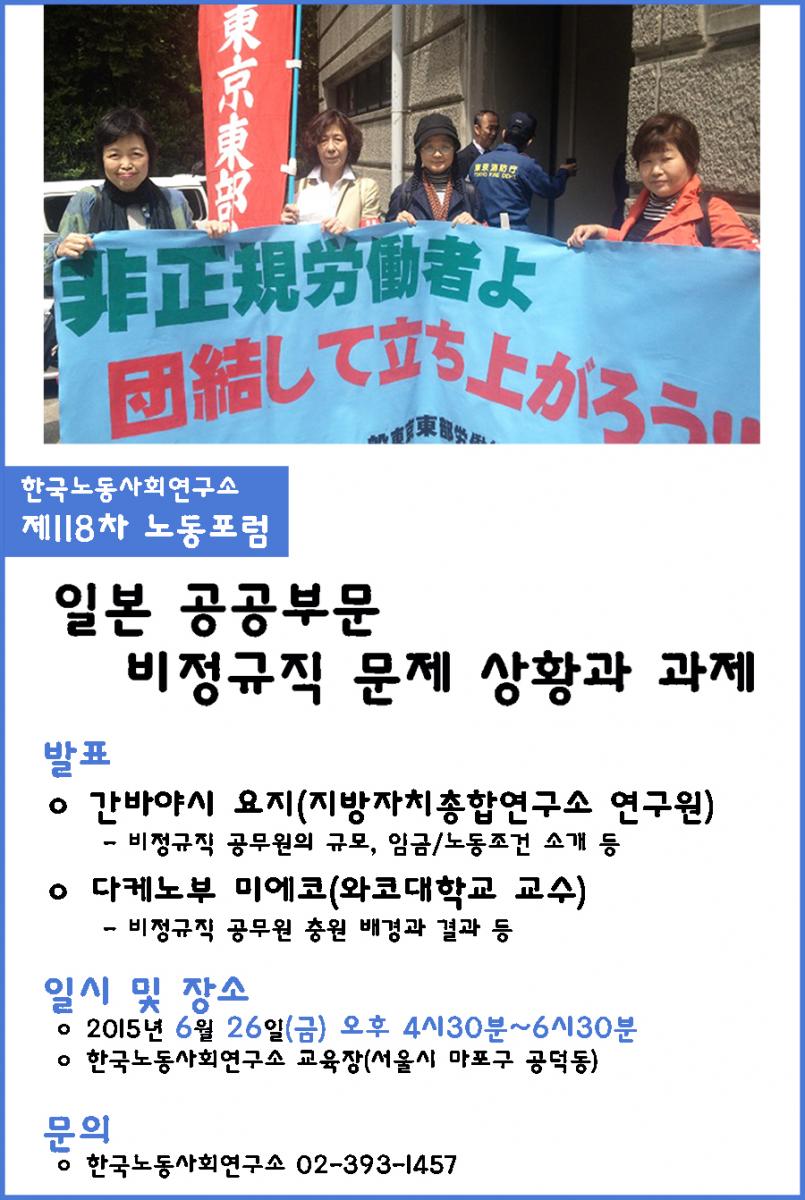 이번 포럼의 주제는 '일본 공공부문 비정규직 문제 상황과 과제'입니다.