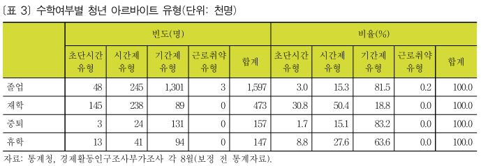 3. 청년 아르바이트 유형별 규모와 추이