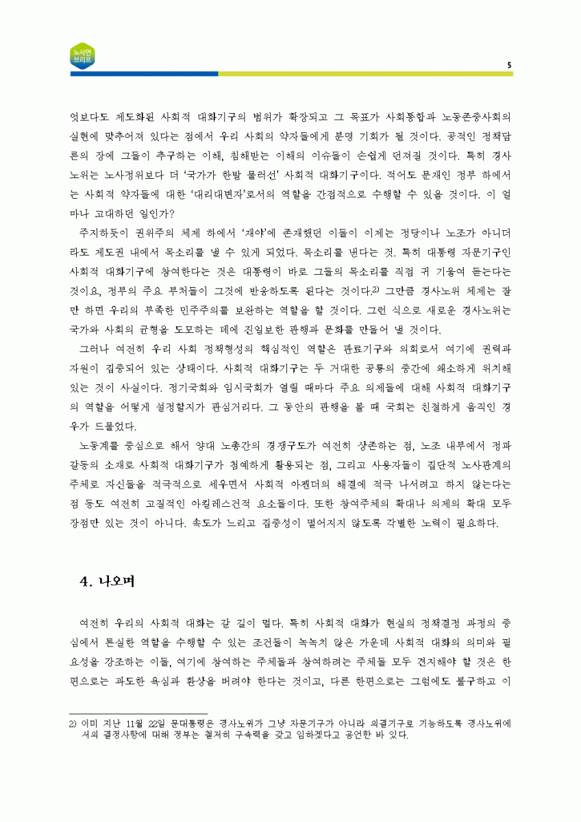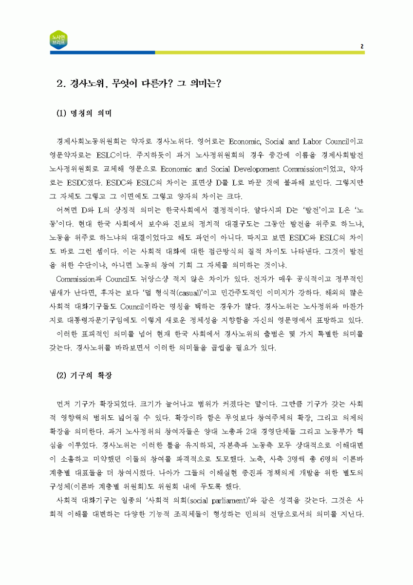 [노사연브리프 제5호_2018-05_국내노동동향] 경제사회노동위원회 출범의 의미와 역할
